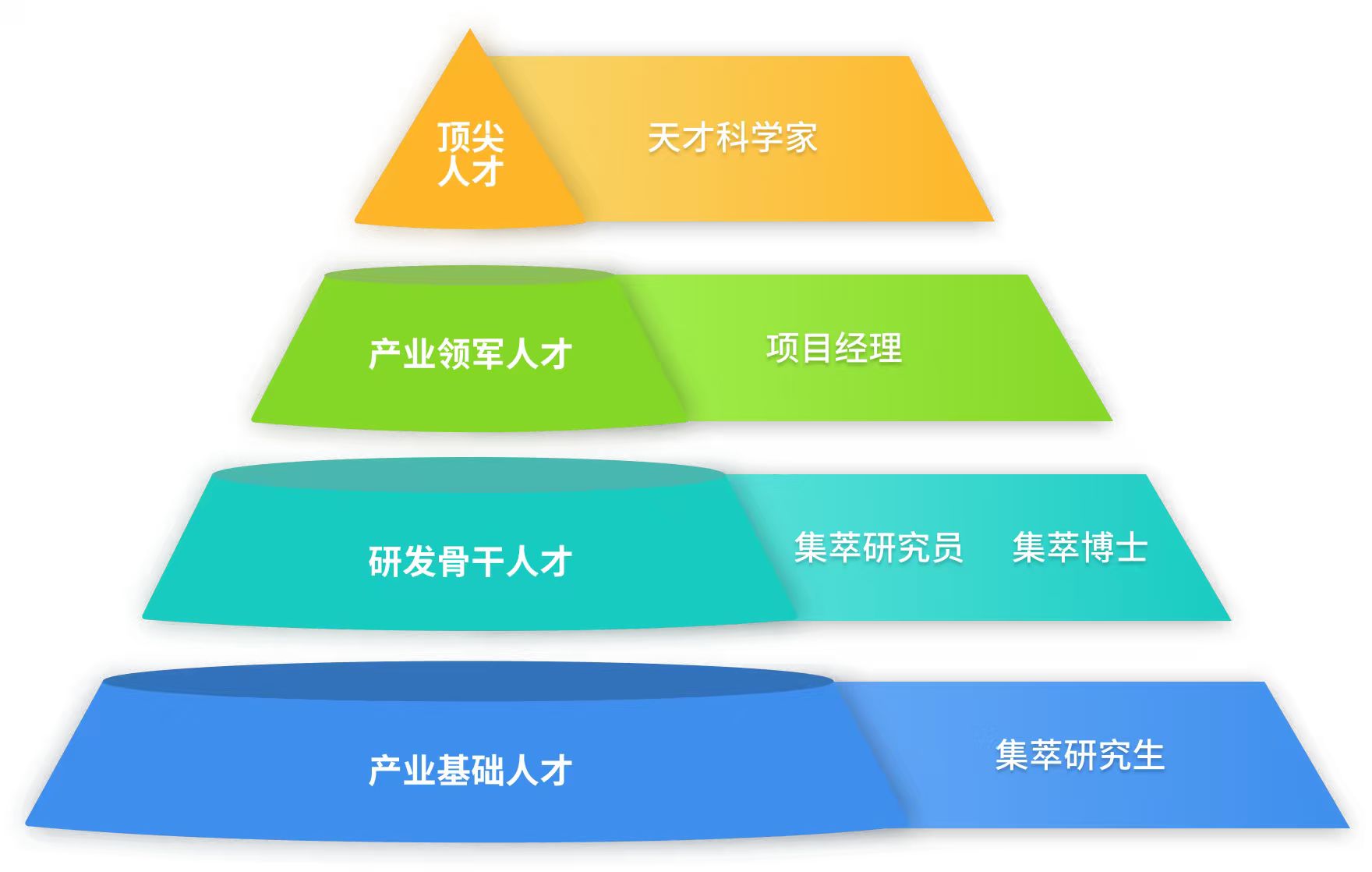 构建天才科学家、项目经理、集萃研究员和集萃研究生共同组成的人才引进、培养、激励与发展的生态,打造以知名科学家为领军、高层次人才为骨干、创新实践人才为主体的产业创新人才队伍。